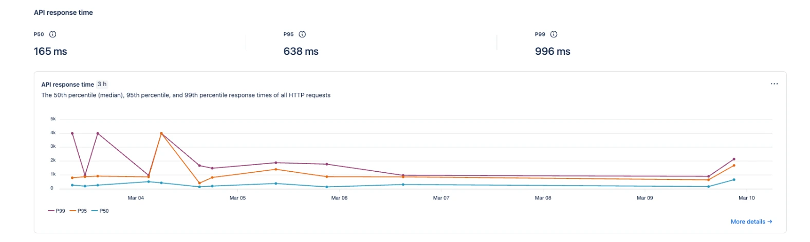 Slechts 1% van de verzoeken is langzamer dan deze waarde.